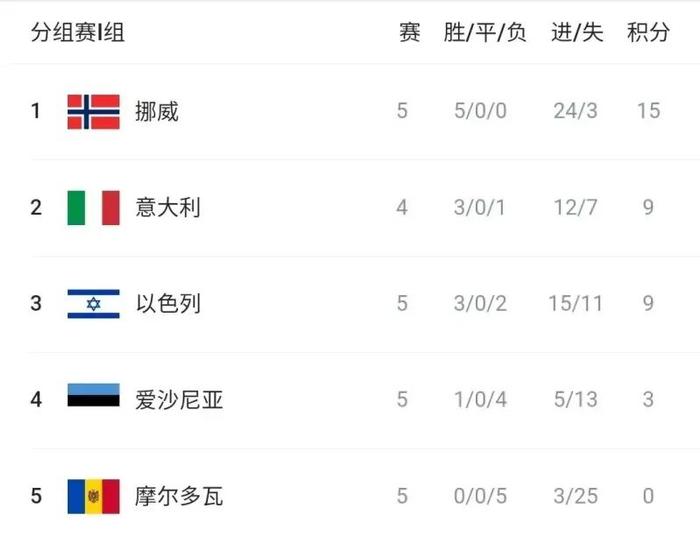 本场比赛结束后,挪威豪取五连胜继续领跑积分榜,他们多赛一场领先意大利6分和16个净胜球。