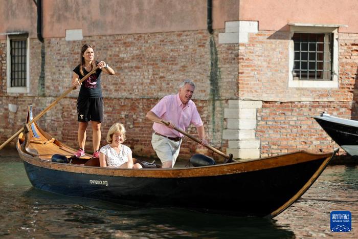 7月17日,在意大利威尼斯,“划行威尼斯”创始人简·卡波拉尔在运河上驾驶虾尾平底船。