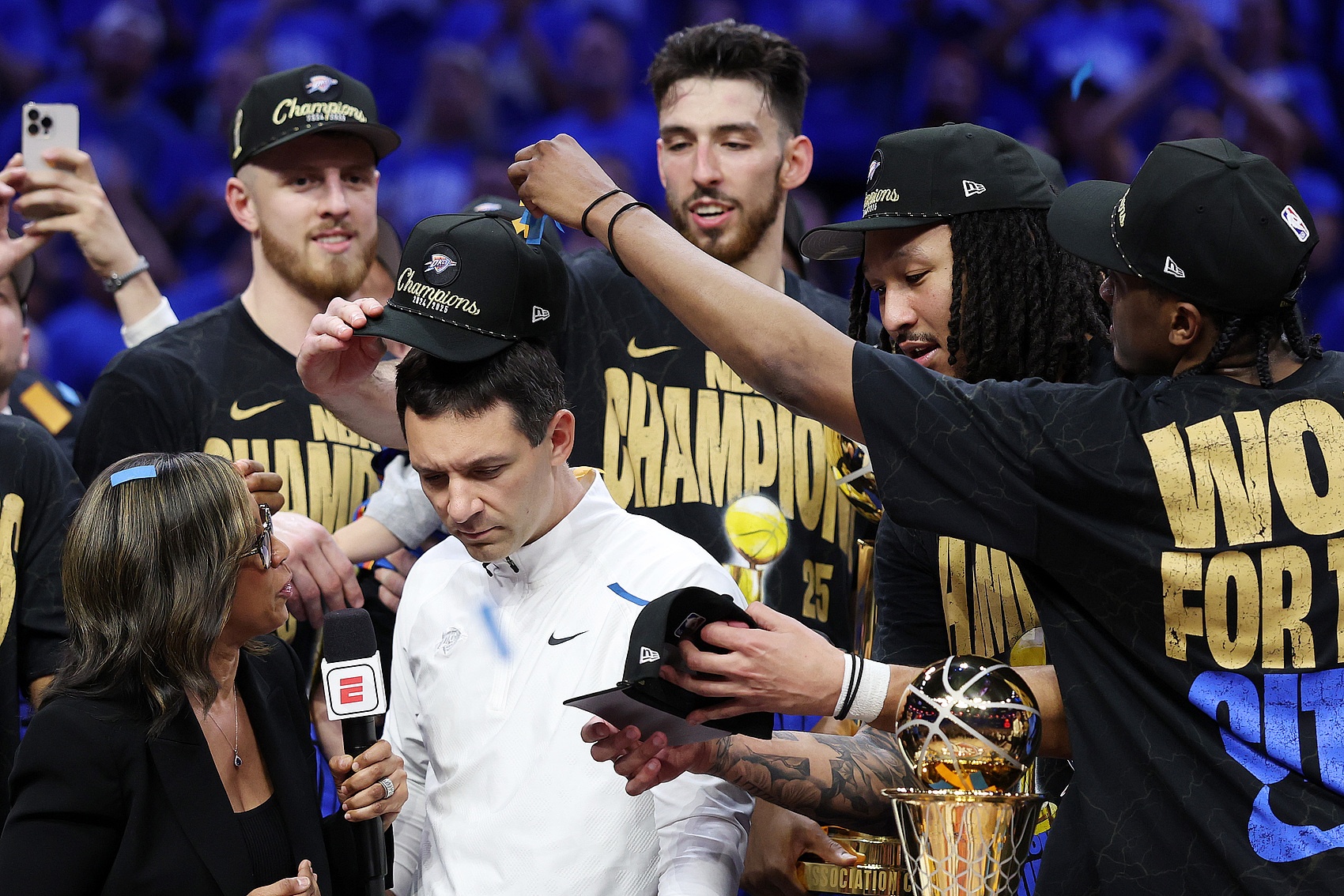 2012年和2025年两次总决赛、两代人两支青年军、两次重建与崛起,雷霆建队历史仅17年就拿到总冠军,无法用言语去形容普雷斯蒂究竟有多么独特和伟大。